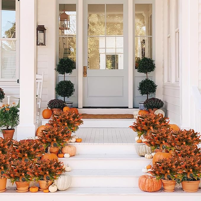 - UV Resistant Fall Artificial Outdoor Plants: These outdoor fake fall plants are made of high quality plastic, uv protection, weather proof. it's sturdy, attactive, and don‘t worry keep it live. These fall artificial flowers feature fade-resistant materials that preserve their vibrant orange color for years