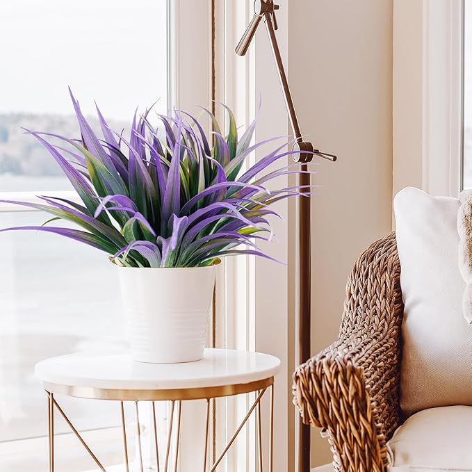 16Pcs Artificial Grass Fake Plants 17.3in Outdoor Plants UV Resistant Faux Greenery Stems Fake Grass for Home Window Garden Office Patio Pathway Front Porch Halloween Décor Green & Purple