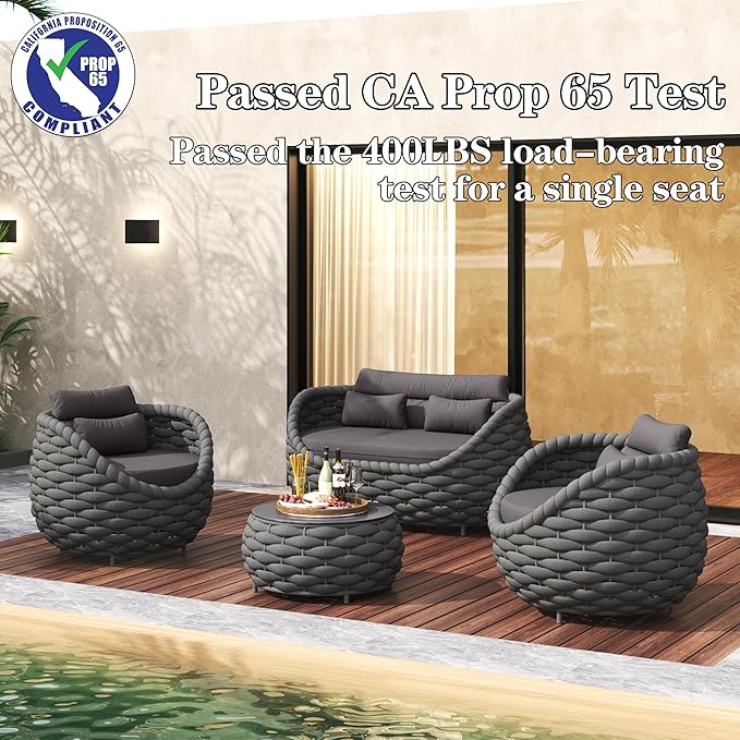 - Sturdy and Long Lasting: Outdoor couch with high quality aluminum alloy,no rust,no deformation,hand woven textilene rope are strong enough to withstand all weather variations.Outdoor patio furniture set cushions balance well with sturdy frame