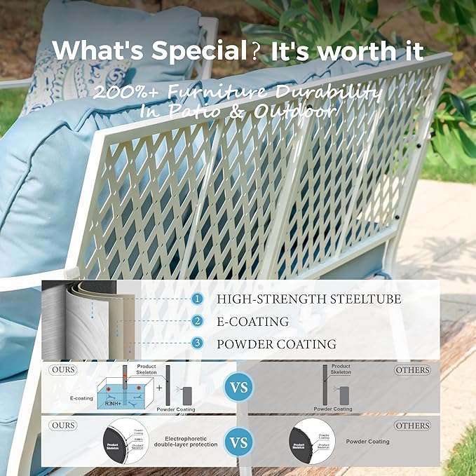 - ALL-WEATHER RESISTANT: This outdoor furniture set is made from weather-resistant materials that can withstand various weather conditions. The powder-coated steel frame and UV-resistant rattan ensure that the furniture remains rust-proof and fade-resistant, making it making it perfect for outdoor use throughout the year