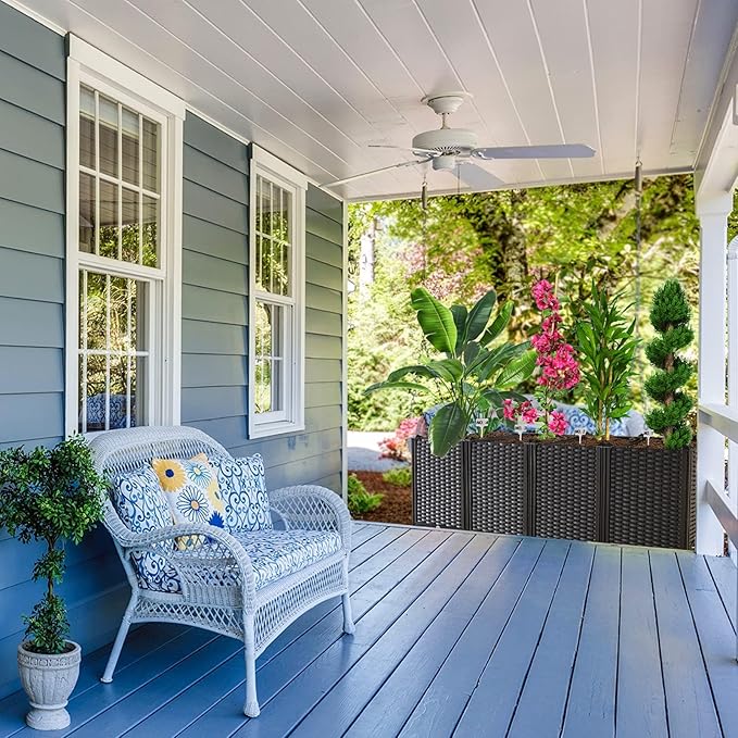 - 【Watering System with Reservoir】:The flower box features self-watering disk & drainage holes, can provide water reservation spaces to avoid plants over-drying when forget to water for some time. Drainage holes will effectively drain out excess water, preventing roots from decay.
