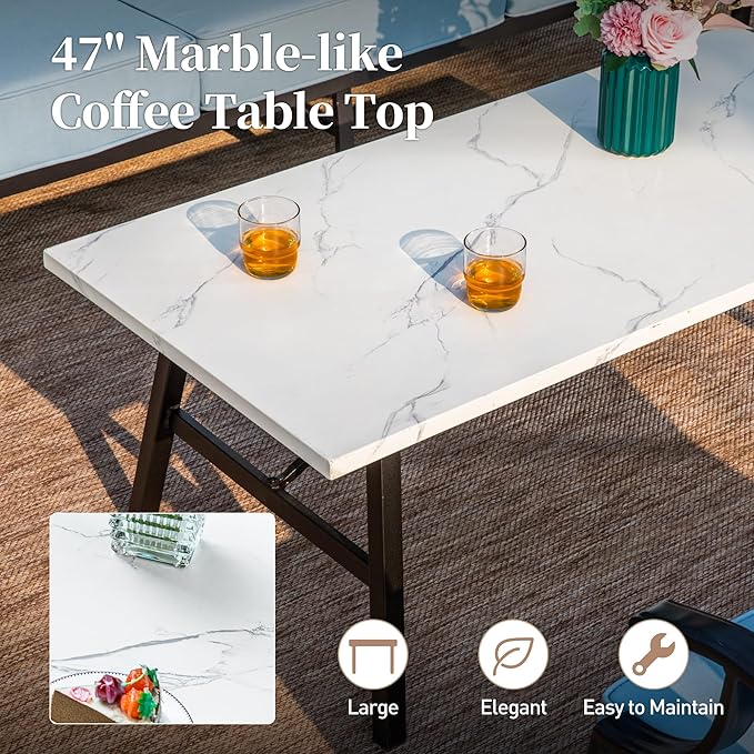 - UNIQUIE DETAILS: This outdoor furniture's diamond back design and marble-like metal table top make this outdoor furniture more unique and exquisite
