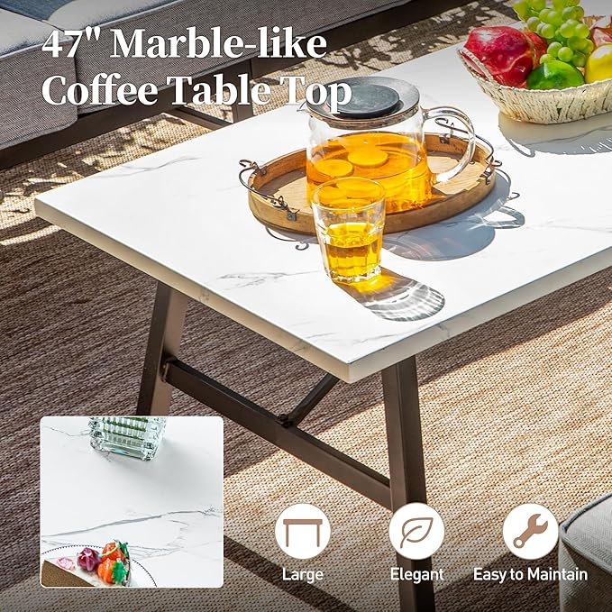- ADVANCED CUSHION FABRIC TECH: Experience the happiness of easy maintenance with the SUNSHINE VALLEY patio conversation set. The fabric of this patio furniture set is made with CUSHION PRO technology. It has excellent waterproof, oil-proof, and stain-resistant properties making the dirt easily wiped down. It can really meet your outdoor leisure needs