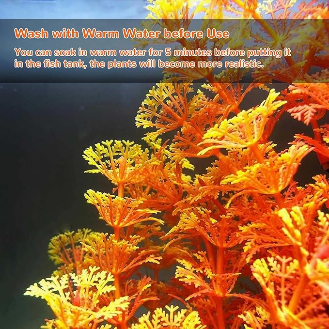 - Note: Fake fish tank plants may get squeezed and deformation during packaging, put into 104 - 140 F warm water get restored. Approx 11.5" tall x 5.5" wide. Please wash with water before use.