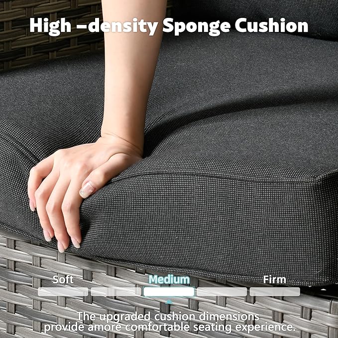- Non-Fading Fabric:3-Year-Non-Fading,made with high-density foam that is soft and supportive, and covered with a breathable fabric that is easy to clean and maintain. The cushion covers are also water resistance, stain-resistant, ensuring they remain in excellent condition in all weather conditions