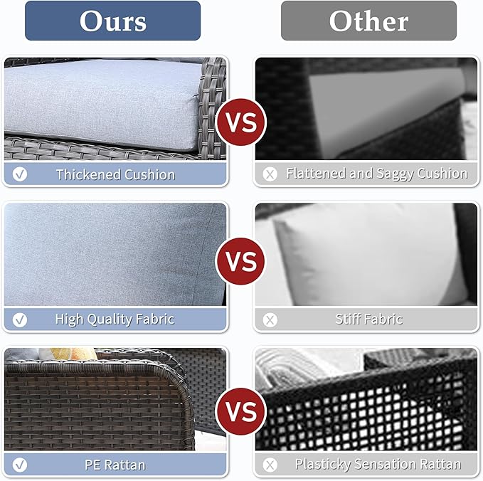 - Easy Assembly & Warranty: Our patio set is easy to assemble with all the necessary hardware and tools included. Plus, we offer a manufacturer warranty for 365 days from the date of purchase and friendly customer service. If you have any questions or concerns, don't hesitate to reach out to us!