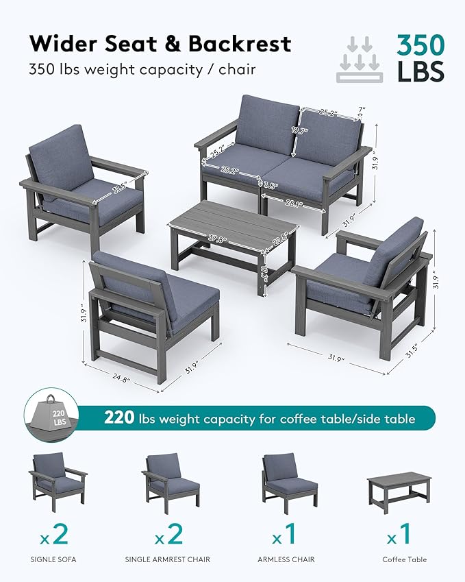 - Exceptional Durability & All Weather: Crafted with HDPE material, this outdoor sectional sofa is built to last, withstanding the test of time and heavy use, each seat can hold up to 360LBS. The weather-resistant HDPE material ensures that this sofa can withstand various weather conditions, making it perfect for outdoor use.