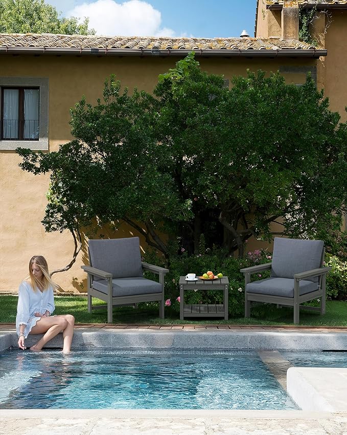 SERWALL HDPE Patio Sofa Set, 3-Piece Sectional Outdoor Furniture Set, All Weather Outdoor Couch Set Patio Furniture Set for Deck, Lawn, Grey Frame with Grey Cushion