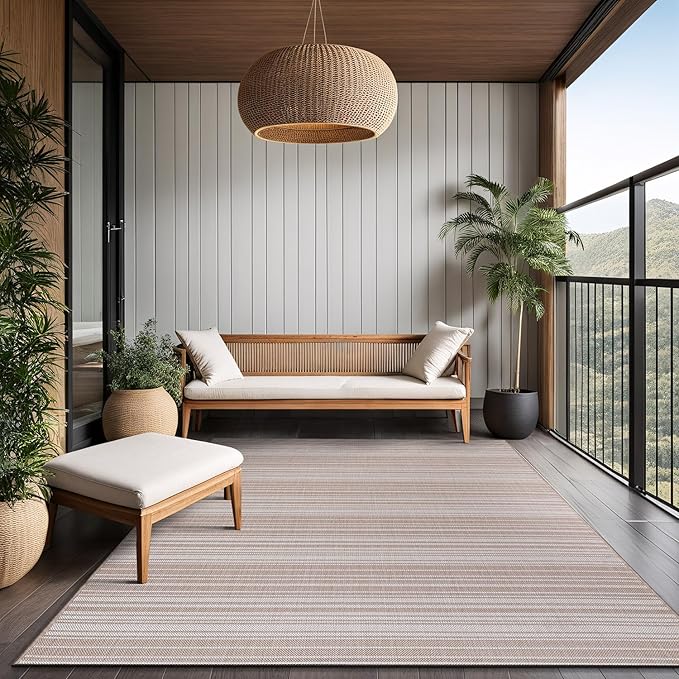 Stripe Outdoor Rug 6x9 Washable Outside Carpet for Indoor Patio Porch Waterproof Easy Cleaning Non Shedding Area Rugs Beige 6 x 9