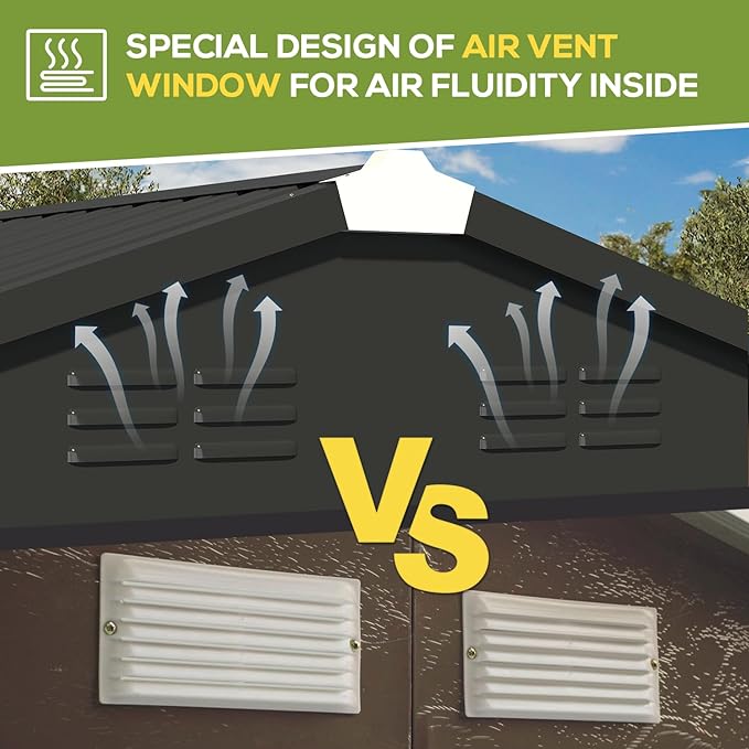 - Size Distinction: Set our storage shed apart from the smaller 7x7 sheds on the market. The U-MAX shed guarantees a perfectly standard storage space, offering an expansive 49 Sq.Ft storage footprint to meet your everyday organization needs.