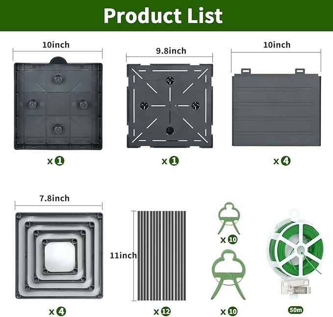 - 【ADJUSTABLE HEIGHT】- The connecting rods can be used at the connecting corner of each side panel to have higher height. Total 16 pieces connect rods allows you to create planter raised beds with 4 different heights, enough to meet the growing needs of normal vine plants and vegetables, allowing plants to stretch their branches meanwhile have more area exposed under sunshine. Grow better, more fruits in the future.