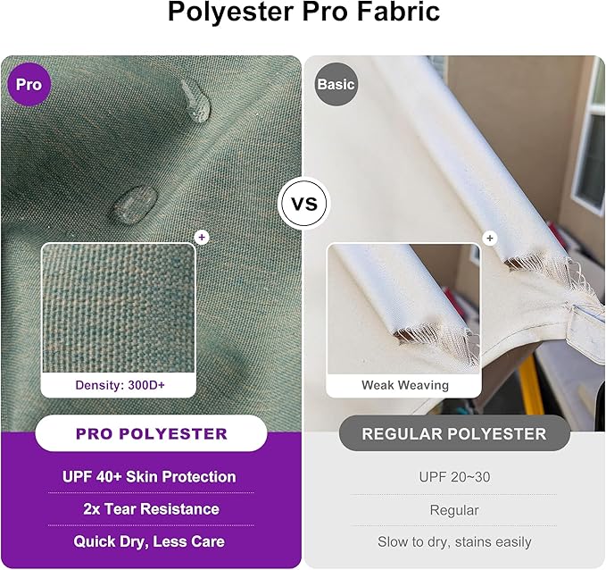 - Long-lasting sun protection: The fabric offers UPF40+ protection, blocking 98% of UV rays, and is fade-resistant for up to three years, with AATCC Level 4 colorfastness. Ideal for enduring sun protection.