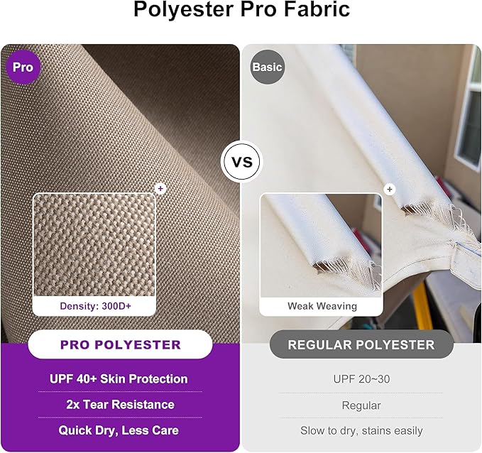 - Long-lasting sun protection: The fabric offers UPF40+ protection, blocking 98% of UV rays, and is fade-resistant for up to three years, with AATCC Level 4 colorfastness. Ideal for enduring sun protection.