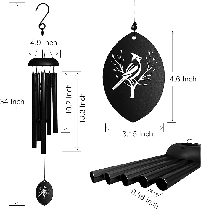 - Premium Quality of Memorial Wind Chimes: The total length from hook to sail is 34 inches, the perfect size for your outdoor and indoor decor. The tone is deep and prominent but not overbearing. industrial strings for durability and long-lasting enjoyment. You will always love the rich tone soothing.