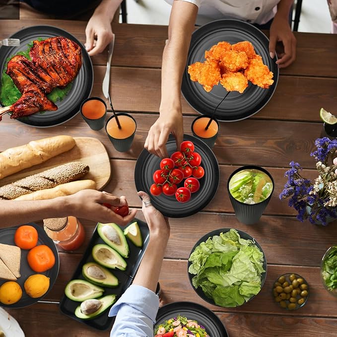 - š¾ Unbreakable & Lightweight: Made from a wheat straw blend, our dishes set is lighter and more durable than ceramic, reducing the risk of accidental breakage and easy to carry. Ideal for home use, camping, parties, picnics, and RV trips.