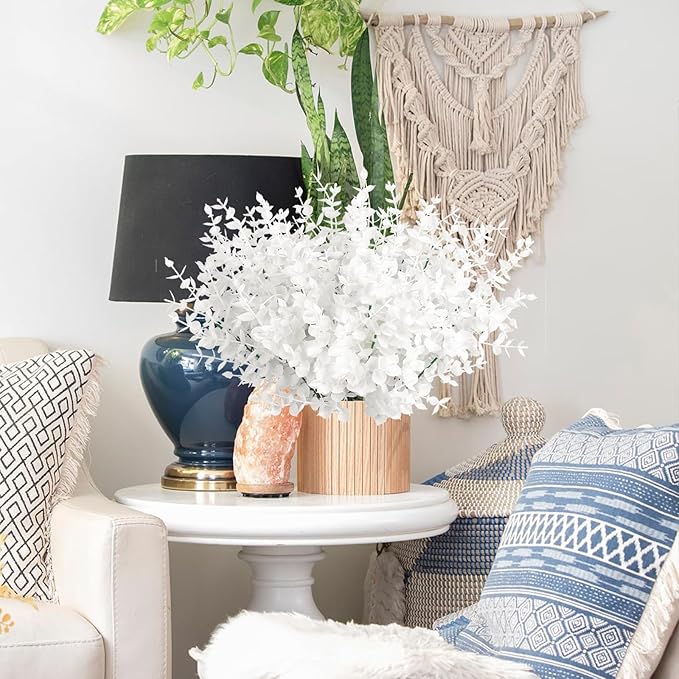 Artificial Fake Outdoor Plants Flowers for Spring Decoration, Faux Plastic Plants Outdoor Flowers UV Resistant Realistic for Home Outside Planter Window Porch Patio Garden(Pure White Eucalyptus)