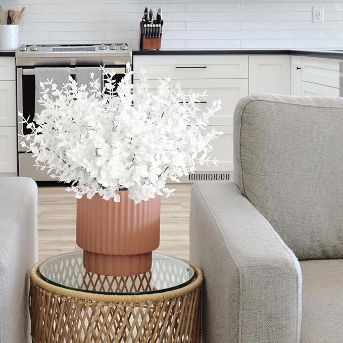 - 【8 Bundles Artificial Fake Flowers】- You will get 8 Bundles artificial flowers, these flowers are handmade to offer a more unique look in every bundle. Each plastic flowers has 7 flexible stems and bushy eucalyptus leaves. The artificial outdoors flowers' height is 13.8".