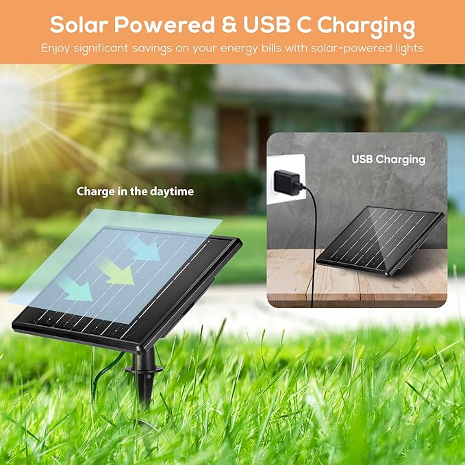 - 【Automatic On/Off & Adjustable Length】Equipped with Light Sensors, outdoor solar powered spot lights for yard garden automatically turn on at Dusk and off at Dawn. No need for manual operation, providing convenience and peace of mind. Providing an optional 13FT (2x6.5ft) Extension Cable (Sold Separately, ASIN: B0D174SZZ3 ).