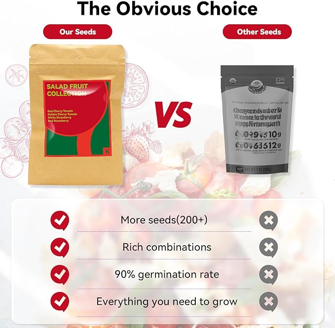 - High Germination Rate, Easy Planting Experience: Our fruit salad seeds exceed 90% germination rate. In addition, the seed kits include easy-to-use growing guides. Whether you're a garden starter or an experienced grower. We are committed to making growing simple and fun, so that you can enjoy the fun and harvest of growing