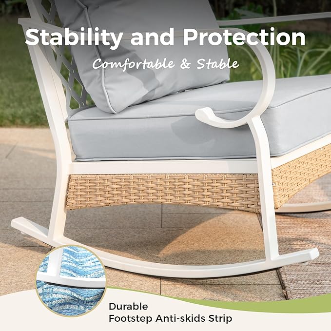 - ALL-WEATHER RESISTANT: This outdoor furniture set is made from weather-resistant materials that can withstand various weather conditions. The powder-coated steel frame and UV-resistant rattan ensure that the furniture remains rust-proof and fade-resistant, making it making it perfect for outdoor use throughout the year