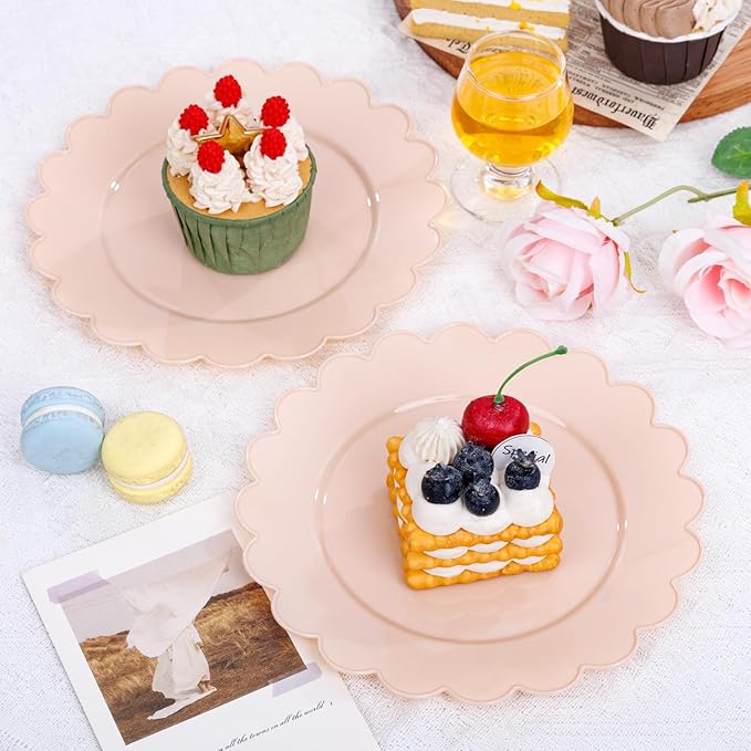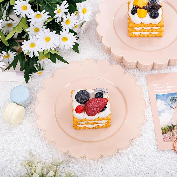 - Elegant Design for Every Celebration:Crafted with delicate scalloped edges and a soft pink finish, these 7.5-inch plates add a touch of sophistication to Valentine’s dinners, birthday parties, weddings, baby showers, or casual gatherings.