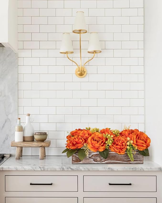 - PERFECT GIFT - These potted flowers are not only good for home decor indoor but also Give these Flower Arrangements with the wooden vase as a gift for housewarming parties, birthdays and Christmas. An ideal choice for window, coffee table, bookshelf, kitchen, hotel, office, bedroom, farmhouse, backyard, balcony decoration