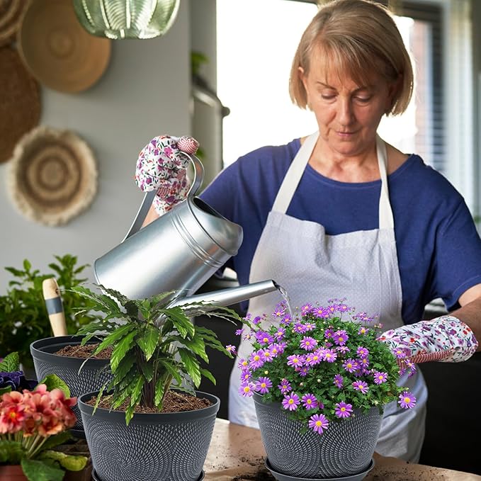 - 【Excellent Drainage and Tray】These lightweight plastic flower pots come with multiple drainage holes in the bottom to let exceed water easily flow out to help prolong the life of your plants, and the saucers are provided to hold just the right amount of water. Our classic 3 packs of 10 inch plant pot could create a healthy living environment for your plants.