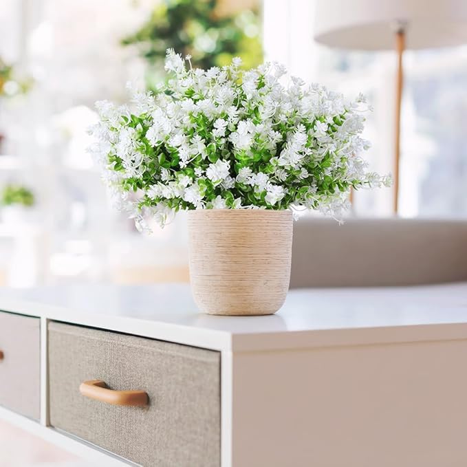 Artificial Flowers for Outside Artificial Faux Plants Flowers Outdoor Spring Decoration, Fake Eucalyptus Realistic UV Resistant for Planter Pot UV Resistant Realistic Outside Porch Patio Garden(White)