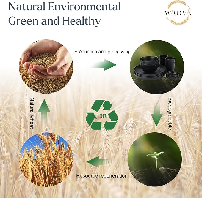 - ā¦ćš£š®š°šøš®š“š² šš»šš¶š±š²ć - Wrova 16pack wheat straw dinnerware sets contains 4pcs 10inches wheat straw plates with deep edge,4pcs 26oz wheat straw bowls,4pcs 12oz wheat straw cups,4pcs sauce plates. All of them are unbreakable,bpa and lead free,lightweight and easy to clean.