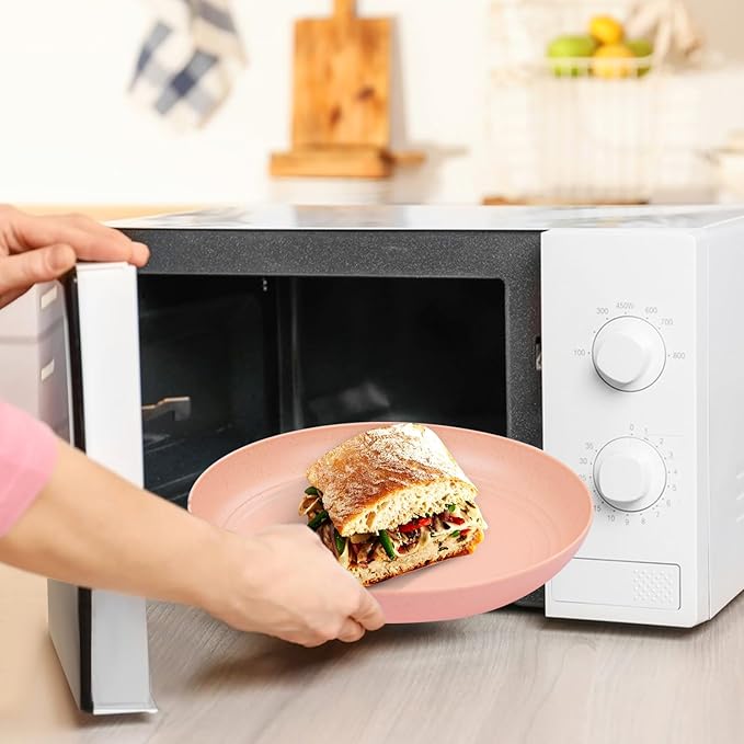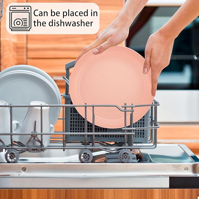 - SAFE MATERIAL:The pink wheat straw dinnerware set is crafted from straw fiber and food-grade safe materials,it is 100% and non-toxic.Built to last,this pink plastic dinnerware set is incredibly sturdy,durable,lightweight,and unbreakable.It not to break or chip, even if accidentally dropped or hit!