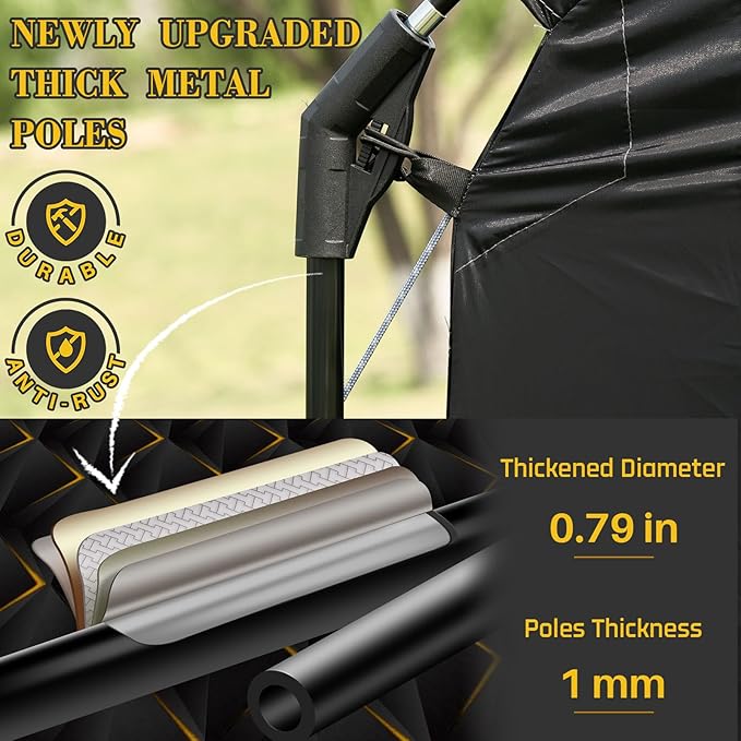- 【Superior Protection】:The bike covers outdoor storage is waterproof,The bike storage tent is made of 210D Oxford cloth coated with silver which provides excellent waterproof and UV protection.All the stitching parts of the tent are treated with waterproof tape.Our garden shed upgrade to 20mm thick metal poles more Strong & wind resistance.And the sheds is equipped with stakes and wind rope,so that you can rest easily on rainy days, heavy snow and other weather.