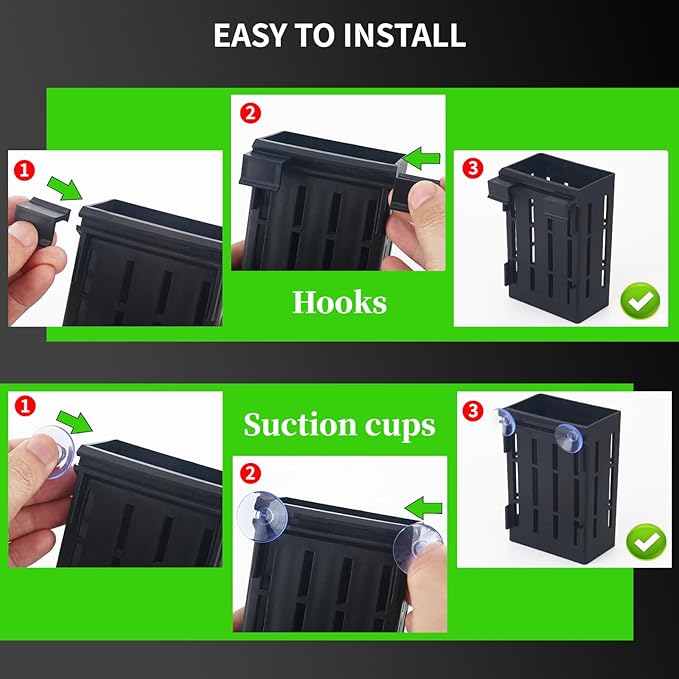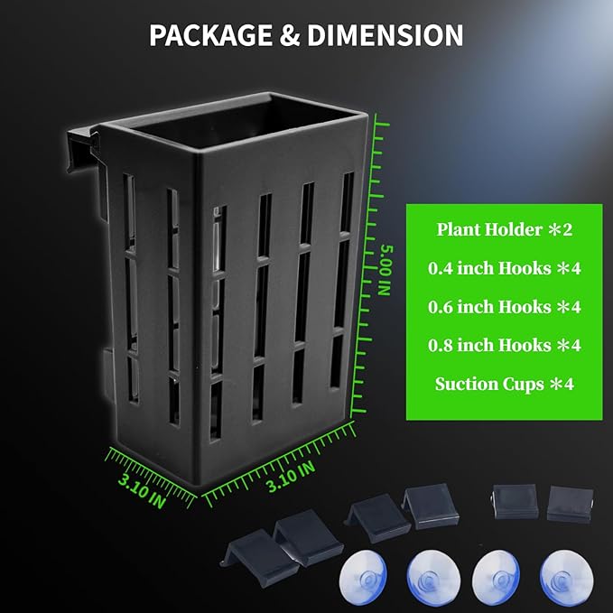 - 【Perfect Design】This aquarium plant holder is uniquely designed and easy to use. It can be used in two ways, it can be hung stably on the glass edge of various aquariums (glass thickness is less than 0.8 inch/2 cm) or it can be attached to the aquarium glass by mounting suction cups. 3.1 x 2 x 5 inches. comes with 6 hooks: there are 3 sizes ( 0.4/0.6/0.8 inches ) 2 of each size. also comes with 2 suction cups: 0.94 x 0.43 inches. single weight: 2.22 ounce.