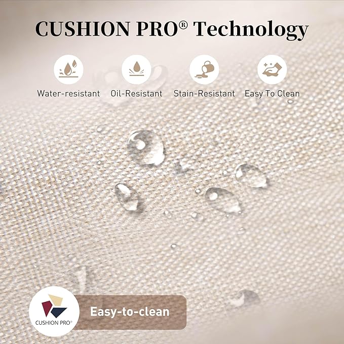 - CUSHION PRO TECHNOLOGY - EASY TO CLEAN: The fabric of this conversation set is applied with CUSHION PRO TECHNOLOGY. It's waterproof, oil resistant and stain resistant, makes the fabric so easy to clean, you can easily wiped off the water, wine, oil and bird droppings with a rag. 47'' coffee table's top is made of toughened glass, stronger and has better security than normal