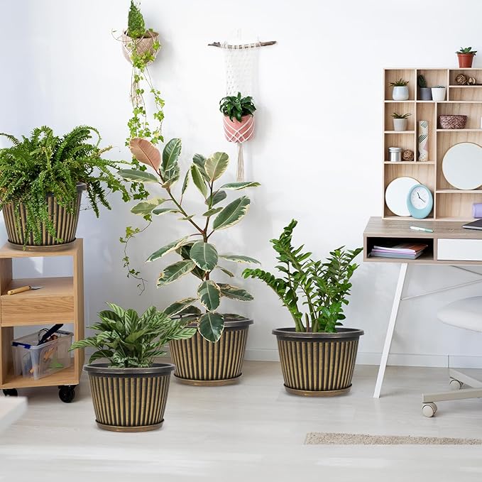 - 【MODERN STYLE PLANTERS】 Indoor planters with saucers provide a unique,nice style in ribbed design which gives an understated elegance that will enhance the beauty of your plant. These 10 inch plant pots are available in red-brown &blue-green & gold finished with a black antique stain. Plastic flower pots would be a beautiful addition to anyone’s deck or sunroom or house! for indoor and outdoor . With better breathabiity and water absorption, it’s beneficial to the healthy growth of plants
