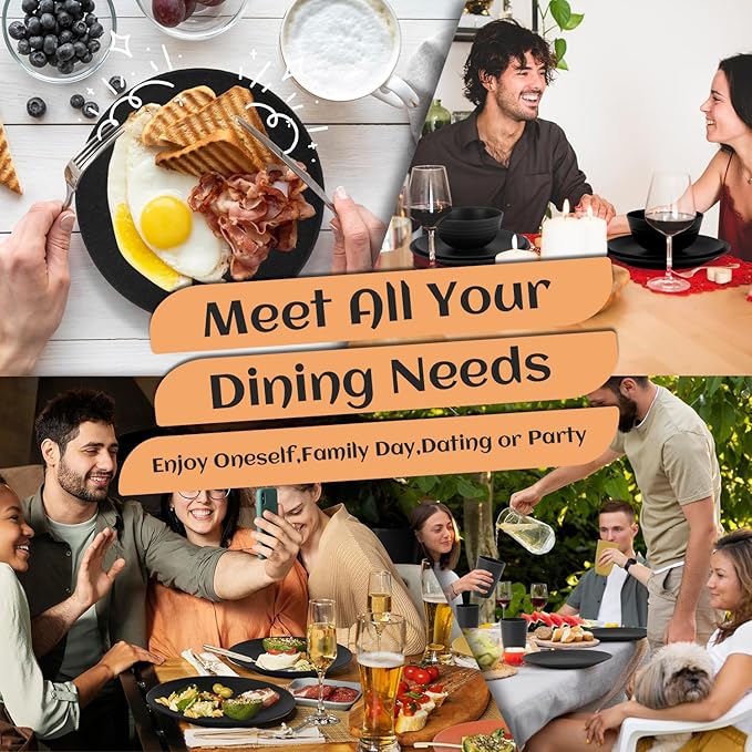 Homienly Wheat Straw Dinnerware Set,40-Piece Dish Set for 8, Dinner Plates, Dessert Plate, Cereal Bowls, Cups, Appetizer Plates,Reusable Dinner Plates Kids Plates and Bowls Sets,Black