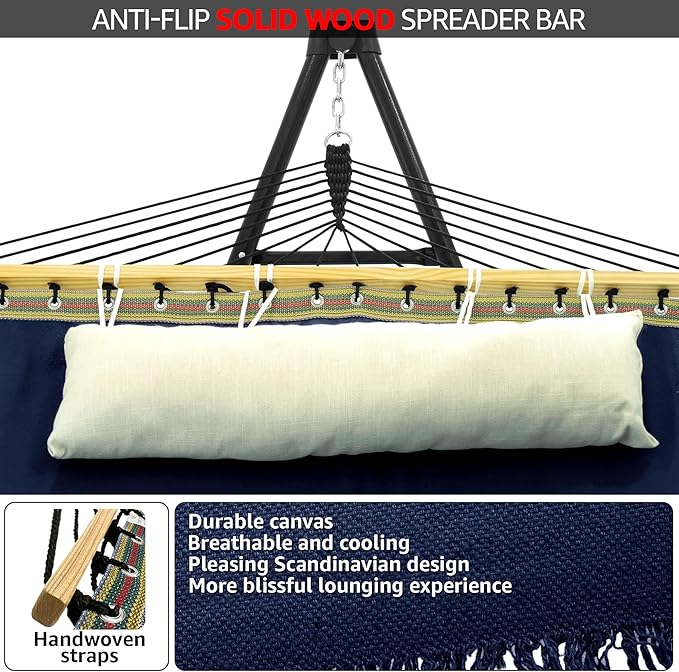 - PREMIUM QUALITY, DURABLE ELEGANCE: Built to withstand the test of time, our hammock is crafted from premium materials that resist fading, fraying, wear, with 800 lbs capacity. The combination of robust netting and sturdy hardwood ensures a long-lasting, stylish addition to your space