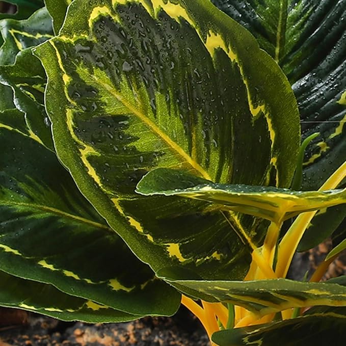 IBWell Reptile Plants - Tortoise Habitat Accessories, Artificial Spider Plant for Gecko, Ball Python, Tortoise Terrarium Decor - Calathea Makoyana B