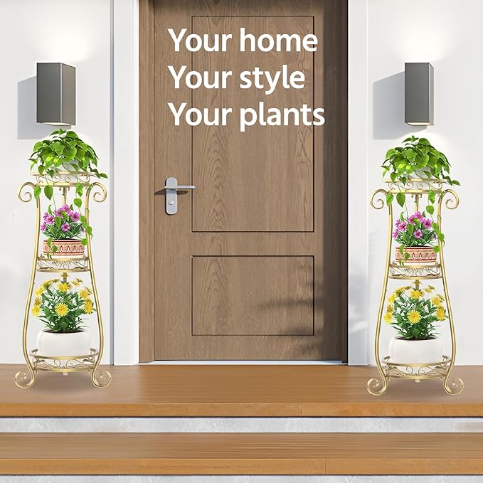 - 【Elegant Home Decor】The flower stands for indoor plants features graceful curves and vintage wrought iron patterns, adding charm to any room. It’s available in 3 versatile colors, making it the perfect centerpiece for your entryway, impressing guests and reflecting your taste.