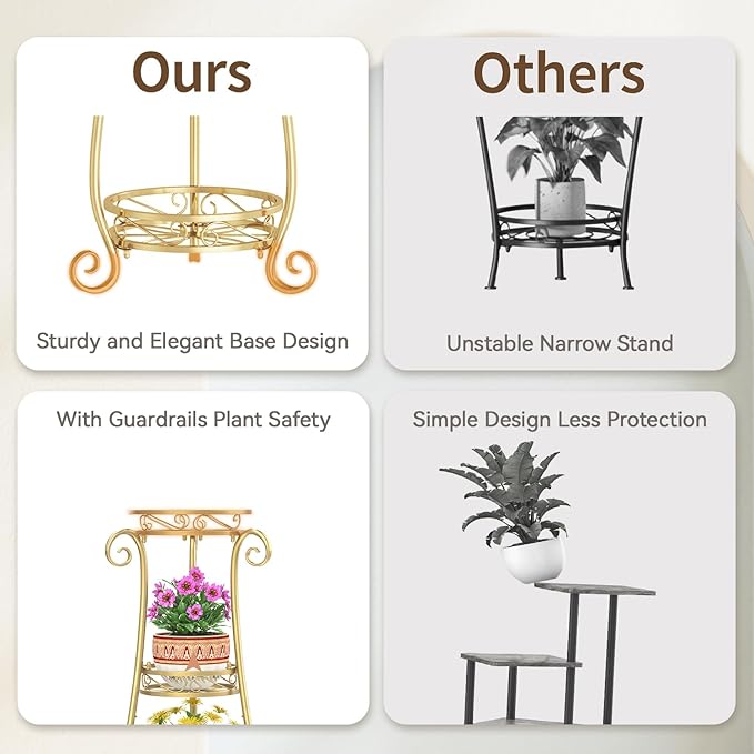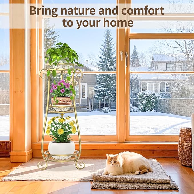 - 【Maximize Space Effortlessly】 Struggling with limited space? This 3 tier metal plant stand maximizes every inch of your living room, balcony, or narrow corner. Enjoy a neat, organized space without sacrificing your love for plants.