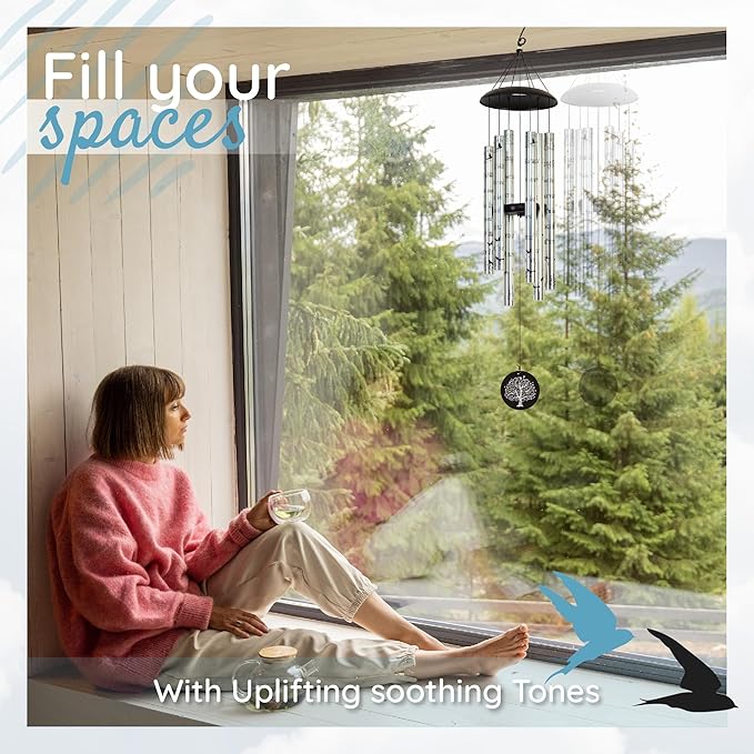- WIND CHIME WITH WONDERFUL SOUND- Each tube is precision tuned to pentatonic scale. Enjoy peaceful melodies that play as a whisper in the wind -rich and full of beauty. They sound lovely and will relax your mind and body. This wind chime can chime easily, all you need to do is just hang it in breeze, it will just chime in the wind.