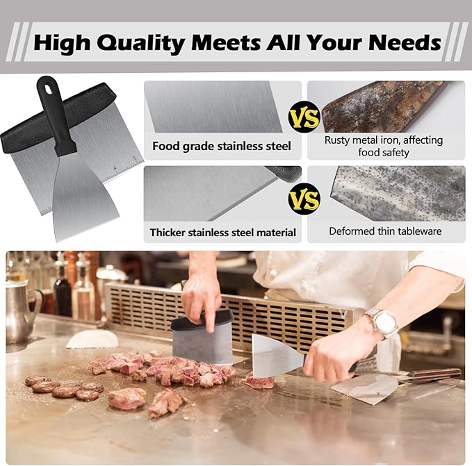 - 【High-quality stainless steel】The BBQ tool set is made of professional-grade,high-quality stainless steel.The material is thickened, so it will not bend or crack easily.It is heat-resistant, rust-proof and more durable.