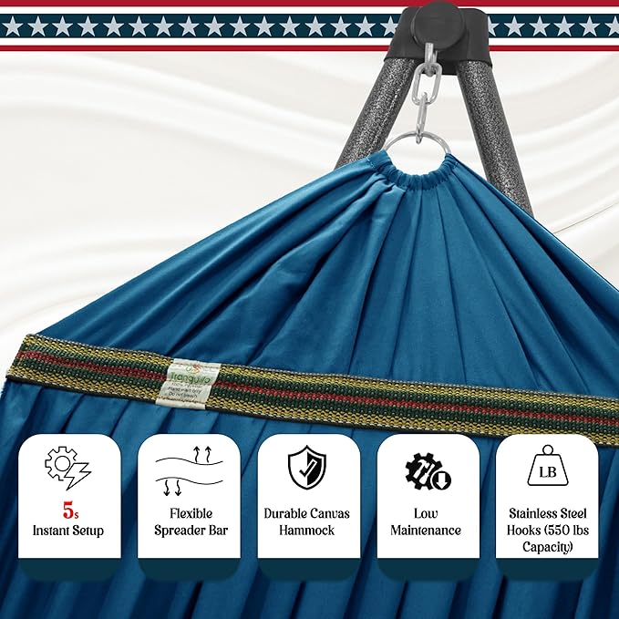Tranquillo Uniki Hammock Stand 550 lbs Capacity, Portable, Collapsible Outdoor Hammock with Stand, Signature Steel Stand Breathable Canvas Hammock Net, Blue