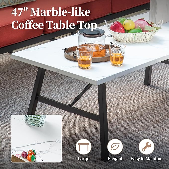 - UNIQUIE DETAILS: This outdoor furniture's diamond back design and marble-like metal table top make this outdoor furniture more unique and exquisite