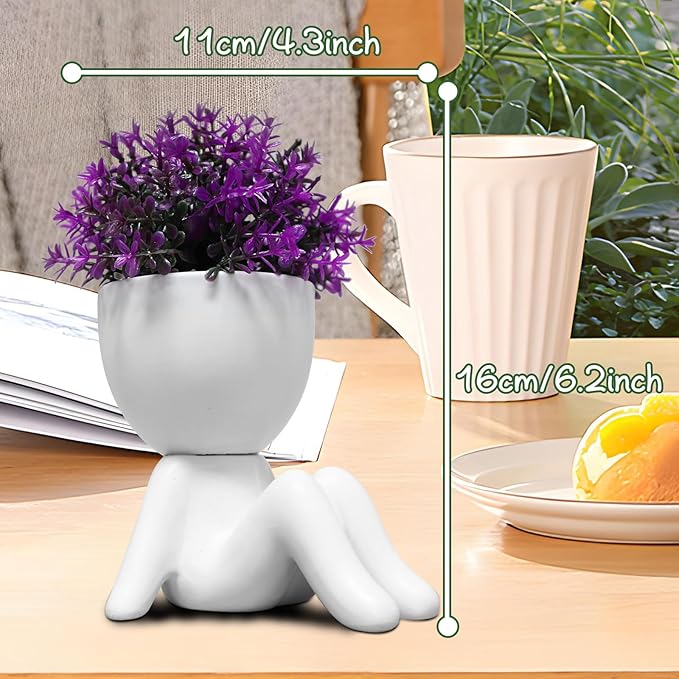 - 【Add Vitality To Your Life】 These human-shaped artificial plants decor has amusing appearance and relaxing actions which can bring small joy to you and may help you release your pressure when you see them around. It give more color to your life!