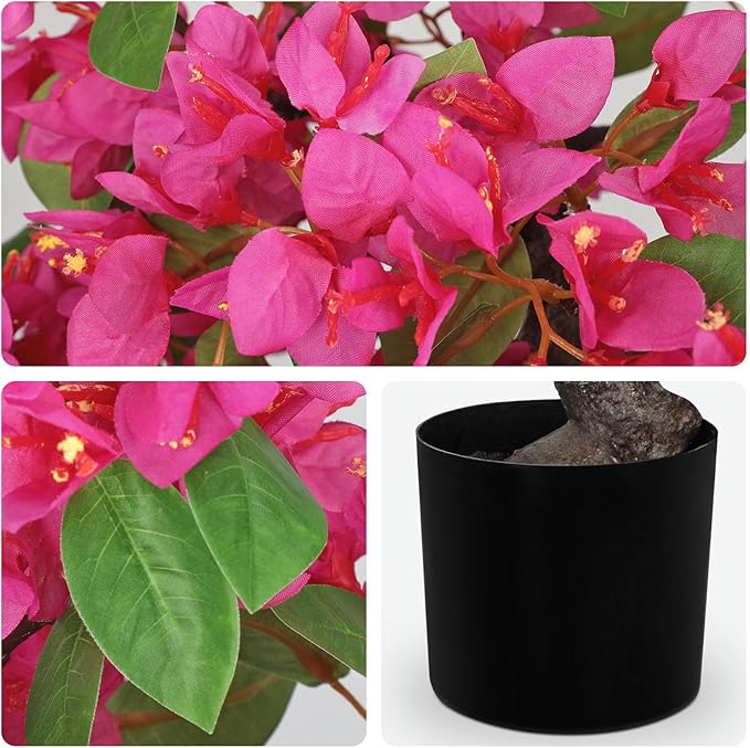 - HIGH-QUALITY MATERIAL: The bougainvillea bonsai tree is made with premium silk flowers and leaves for a soft, realistic texture, paired with a sturdy plastic pot and an artfully shaped trunk for a durable and elegant display.