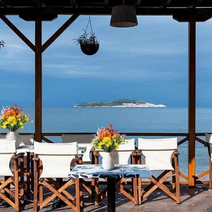 - 【Sun and Rain Resistant】Our outdoor artificial flowers are suitable for both indoor and outdoor display. They are UV-resistant and can withstand wind, rain, and other harsh weather conditions, suitable for placement on porches, decks, pathways, courtyards, gardens, yards, etc. However, please note that while their design is resilient, prolonged exposure to sunlight may shorten the lifespan of the flowers and cause fading.