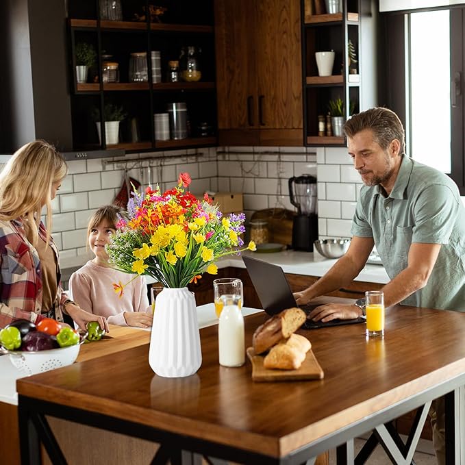 - 【Versatile Decoration】Perfect for kitchen decor, office decor, bar decor, shop decor, etc. Our faux greenery can be displayed in various occasions, catering to your different needs. These flowers illuminate your special moments with exquisite colors and charm. They are also suitable for decorating gravesites, weddings, parties, birthdays, Mother's Day, Christmas, Valentine's Day, and other holidays.