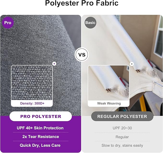 - Long-lasting sun protection: The fabric offers UPF40+ protection, blocking 98% of UV rays, and is fade-resistant for up to three years, with AATCC Level 4 colorfastness. Ideal for enduring sun protection.