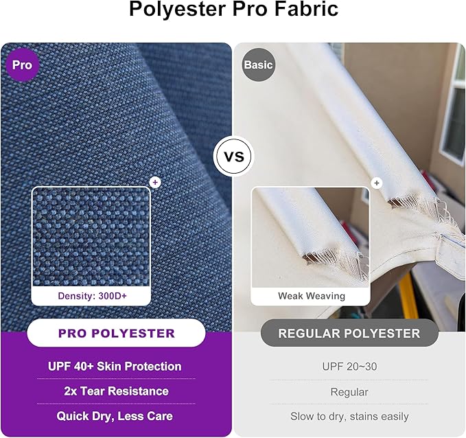 - Long-lasting sun protection: The fabric offers UPF40+ protection, blocking 98% of UV rays, and is fade-resistant for up to three years, with AATCC Level 4 colorfastness. Ideal for enduring sun protection.