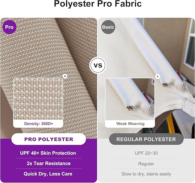 - Long-lasting sun protection: The fabric offers UPF40+ protection, blocking 98% of UV rays, and is fade-resistant for up to three years, with AATCC Level 4 colorfastness. Ideal for enduring sun protection.